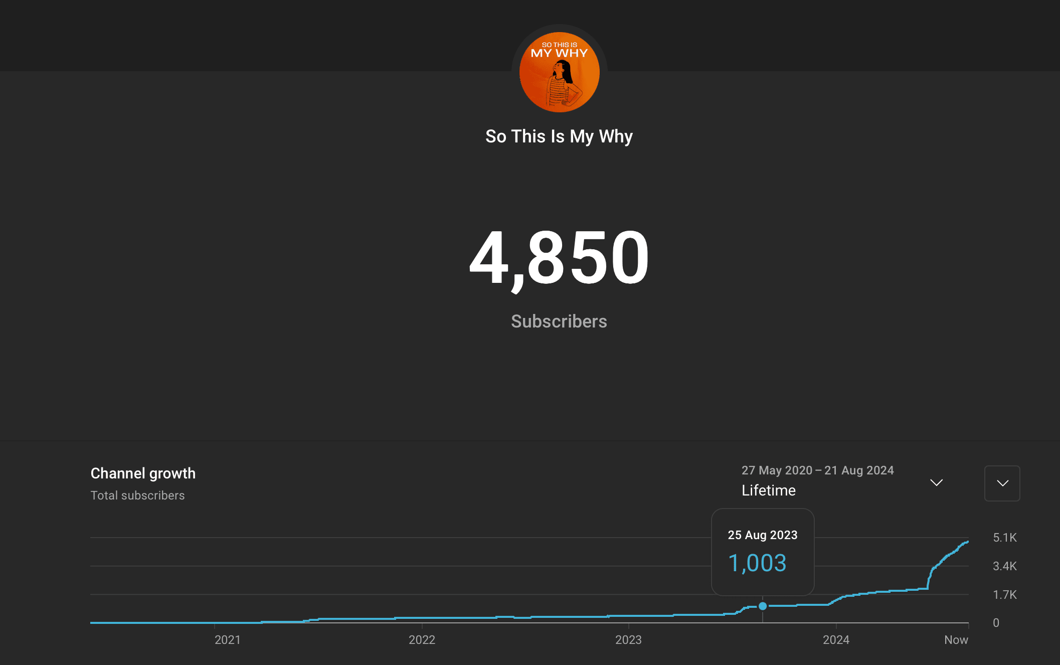 Tomorrow (25 August 2024) marks exactly 1 year since that milestone, and we're already at 4,850 subscribers.